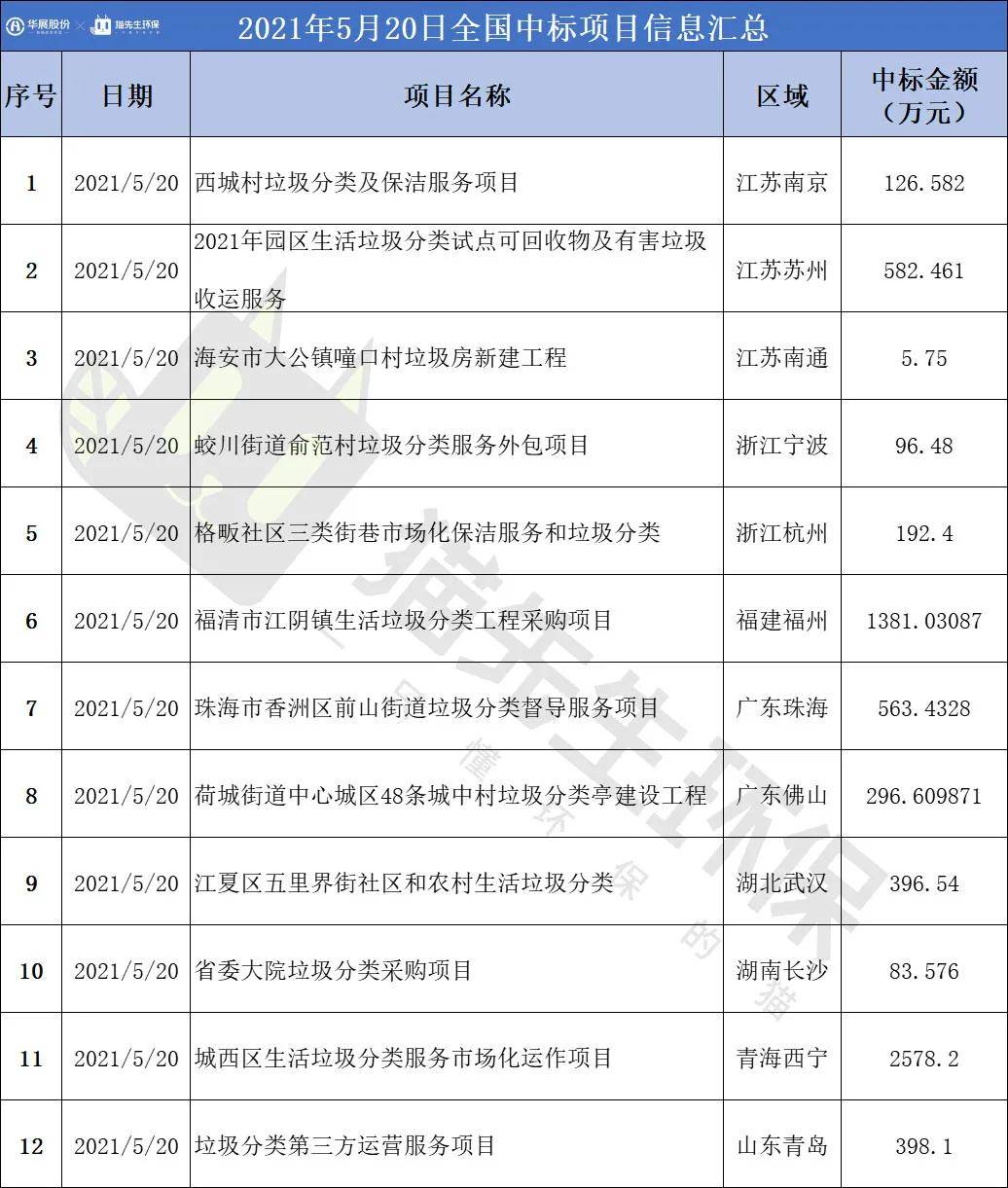 2021年5月20日,全國(guó)中標(biāo)項(xiàng)目共12個(gè)。
